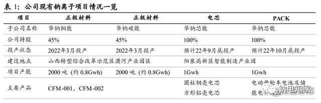 華鈉芯能(néng)同樣爲 PACK 廠(chǎng)的運營主體,據公司官網 1Gwh 鈉離子 Pack 電池生産項目于 2022 年 7 月 25 日宣布正式開(kāi)工(gōng),且該項目建設全面對(duì)标行業一流, 2022 年 10 月底投産。