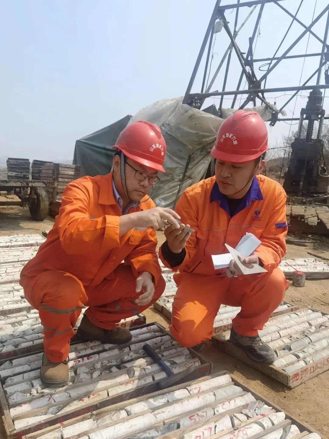 山東地礦六隊地質人員查看(kàn)鑽取的金(jīn)礦岩心