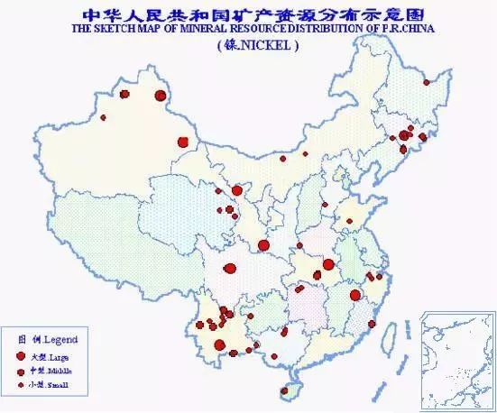 中國鎳礦資源不能(néng)滿足需要。總保有儲量鎳784萬噸,居世界第9位。鎳礦産地有近100處,分布于18個省(區(qū))。
