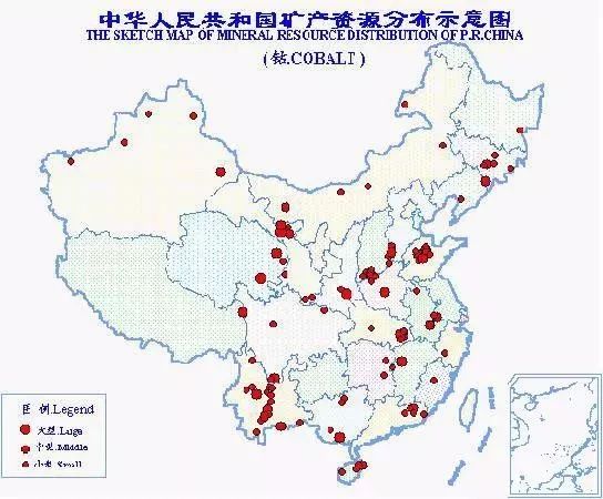 中國钴礦資源不多,獨立钴礦床尤少,主要作(zuò)爲伴生礦産與鐵(tiě)、鎳、銅等其他(tā)礦産一道(dào)産出。已知(zhī)钴礦産地150處,分布于24個省(區(qū)),以甘肅省儲量最多,約占全國總儲量的30%。全國總保有儲量钴47萬噸。