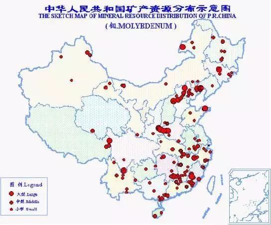 中國钼礦資源豐富,總保有儲量钼840萬噸,居世界第2位。探明(míng)儲量的礦區(qū)有222處,分布于28個省(區(qū)、市)。以河(hé)南省钼礦資源爲最豐富,钼儲量占全國總儲量的30.1%。