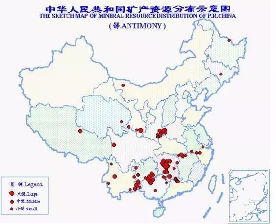 中國是世界上(shàng)銻礦資源最爲豐富的國家。總保有儲量銻278萬噸,居世界第1位。已探明(míng)儲量的礦區(qū)有111處,分布于全國18個省(區(qū)),以廣西銻儲量爲最多,約占全國的41.3%;其次爲湖南、雲南、貴州、甘肅、廣東等省。