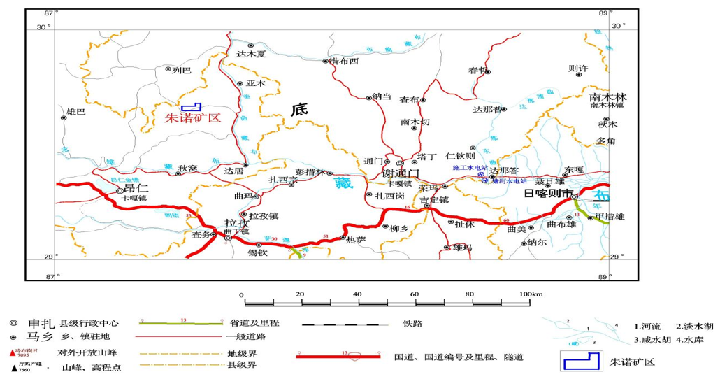 ▲礦區(qū)交通位置及礦權範圍示意圖