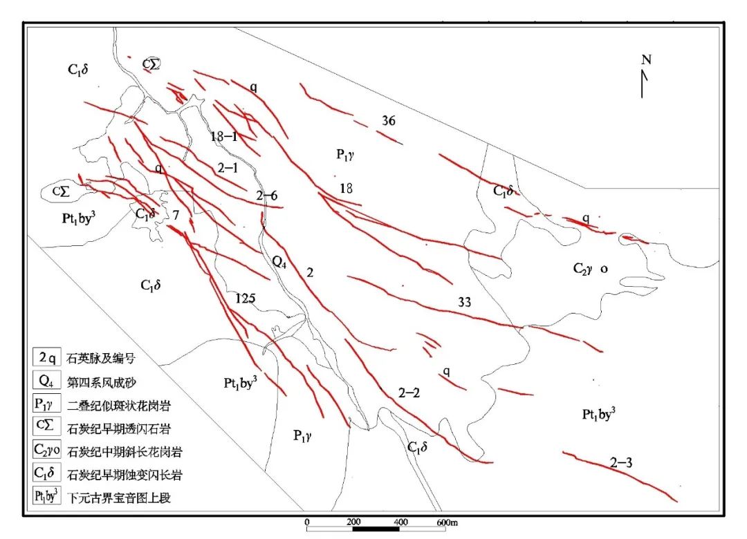 圖古日格金(jīn)礦西礦區(qū)礦脈分布圖