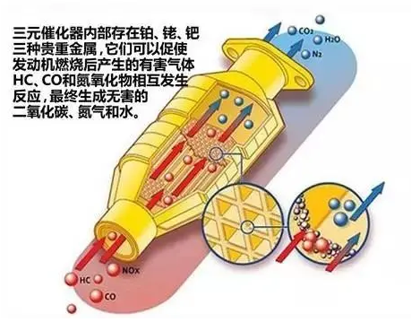 大(dà)部分汽車中都有一個配件——三元催化器,它能(néng)減少諸如一氧化碳、碳氫化合物和(hé)氮氧化合物等有害氣體的排放(fàng),是汽車中一個比較重要的組成部分。轉換器中的某些(xiē)化學反應會(huì)将有害物質轉換爲二氧化碳、水(shuǐ)和(hé)氮。