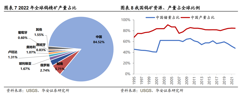 同時(shí),中國也(yě)是世界上(shàng)鎢産量最豐富的國家。根據美(měi)國地調局(USGS)統計(jì),2022年全球鎢礦産量8.4萬噸,其中中國産量7.1萬噸,約占全球總産量的84.5%。