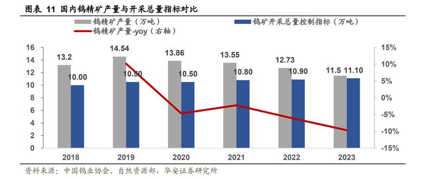今年3月,自(zì)然資源部下(xià)達了(le)2024年度首批僅爲6.2萬噸的鎢礦開(kāi)采總量控制指标,規模的收縮意味着國内鎢精礦産量将延續下(xià)滑趨勢。随着中國對(duì)鎢資源采取總量控制、出口配額管理(lǐ)、國家收儲等逐步收緊行業政策的實施,預計(jì)未來(lái)全球鎢礦供應将逐步趨緊,鎢的産量增速将逐步放(fàng)緩。
