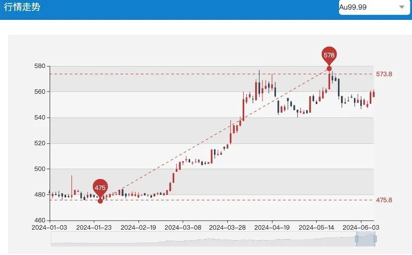 拉長時(shí)間看(kàn),盡管近期現(xiàn)貨黃金(jīn)價格有所回落,但(dàn)年初至6月7日漲幅仍超11%。國内金(jīn)價亦不斷攀升,上(shàng)海黃金(jīn)交易所AU9999年内最高(gāo)觸及578元/克,較年初低(dī)點475元/克漲幅達21.68%。
