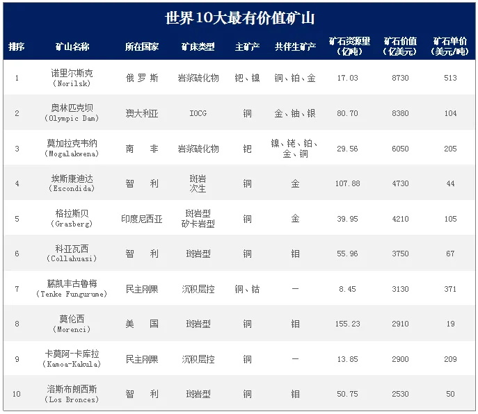 2022年全球最具有價值最高(gāo)的十座礦山有哪些(xiē)